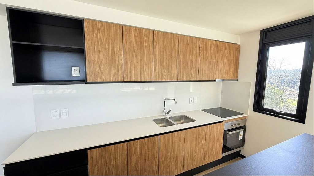 El apartamento está equipado con una kichenette moderna con anafe y horno empotrado. La calefacción se resuelve mediante aire acondicionado split, asegurando confort durante todo el año. Además, cuenta con placares empotrados en los dormitorios para optimizar el espacio de almacenamiento. La seguridad es un punto fuerte, con vigilancia 24 horas y portero, brindando tranquilidad a los residentes.