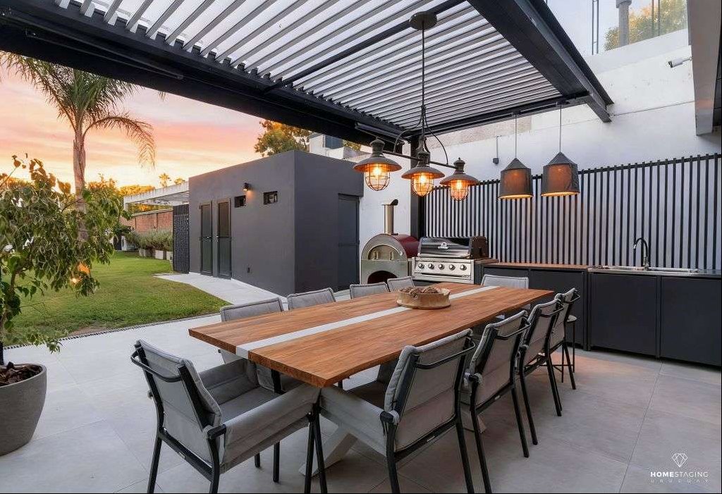 La recepción con doble altura marca la bienvenida con luz natural y amplitud. Una cocina integrada con isla central, pensada para disfrutar y compartir, se abre al gran jardín orientado al norte, donde la vida fluye entre el verde y la calma. Cuenta con tres dormitorios en suite, todos de gran confort, destacando la suite principal con vestidor amplio y baño de diseño. En el área exterior, el estar de verano con horno de pizza y barbacoa a gas invita a las reuniones largas y distendidas. Al fondo, una piscina climatizada se acompaña de una barbacoa cerrada de grandes dimensiones, bodega de vinos, barra gourmet, y un espacio de juegos con vistas al jardín.