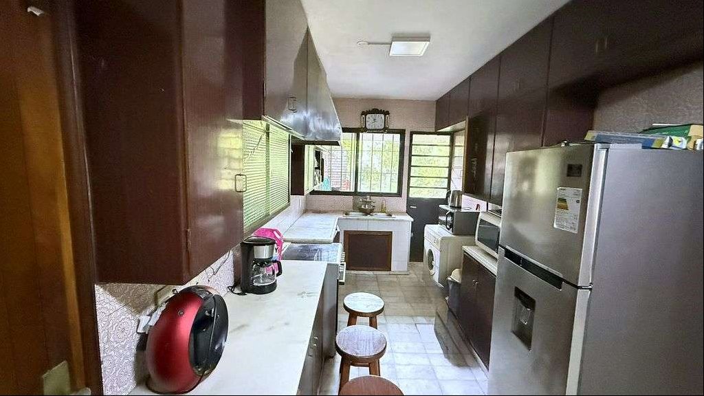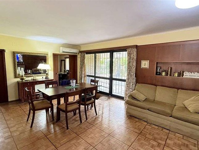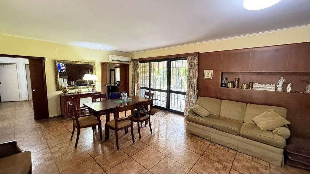 La distribución interior incluye 3 dormitorios, dos de ellos en suite, y 1 baño completo adicionales. Además, dispone de un dormitorio y baño de servicio, cocina definida, lavadero, comedor y estar. La casa cuenta con placares en los dormitorios y calefacción central a gas. El estado general de la propiedad es a refaccionar o reciclar, lo que representa una oportunidad para personalizarla a gusto y de valorizarla mucho más.
